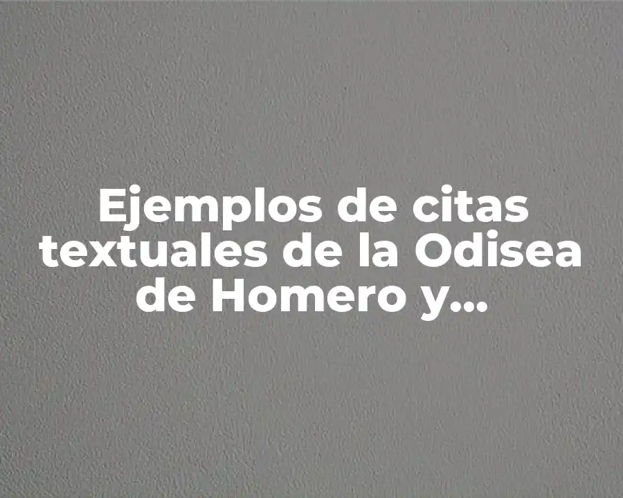 Se puede utilizar una cita textual de la Odisea de Homero en una oración para ilustrar o respaldar un argumento o idea. Por ejemplo, se puede utilizar la cita ¡Oh, dioses! ¡Oh, dioses! ¡Oh, Zeus! ¡Siempre celaos! ¡Siempre celaos! ¡Siempre celaos! (Odisea, libro 1, verso 1-4) para enfatizar la importancia de la invocación a los dioses en la Odisea.